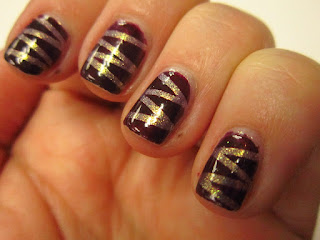 So I have been pretty busy the past few days. I wanted to post something today but didn't have a lot of time to fully change up my polish. I was still wearing Pure Ice Taxi from my No H8 Nov. 8th post. I decided to put some striping tape on and paint on a coat of OPI Honk If You Love OPI.